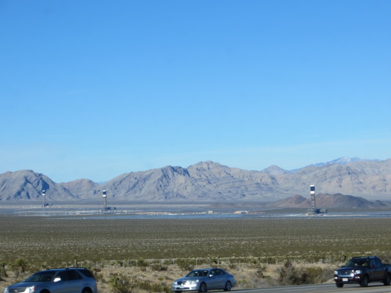 Це Ivanpah Solar Electric Generating System, тут планують встановити сонячних панелей на 392 МВт. Поки шо все будується, тому подивитися особливо не можна нічого: